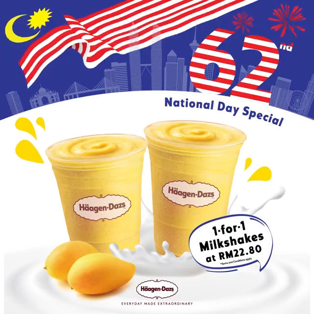 8月份即将庆祝马来西亚第62年的国庆日,这次Haagen-Dazs推出了 Haagen Dazs Milkshakes 奶昔买一送一促销优惠!