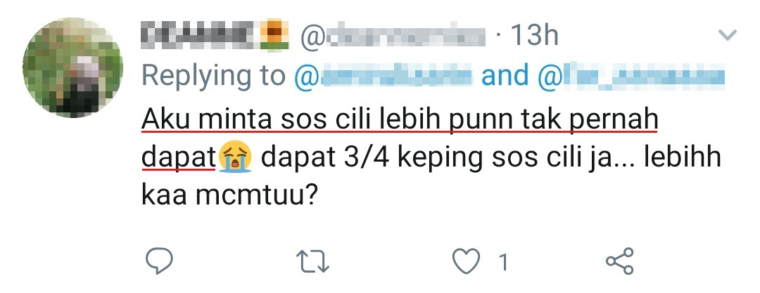 ▼ 有的网友则抱怨:「我每次只是要求多一点辣椒酱,都从来没有得到过!」