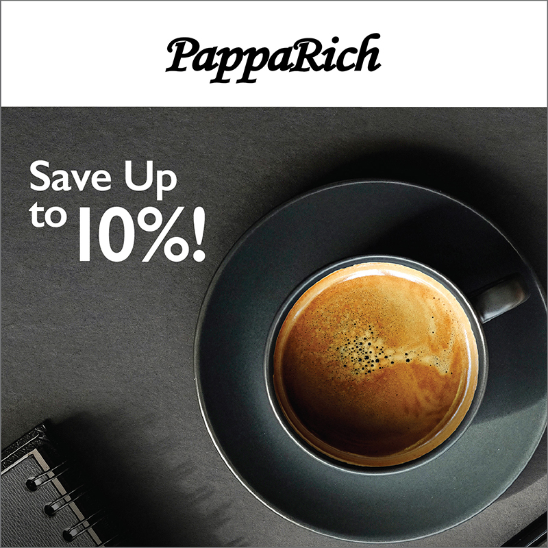 • 10%的折扣不适用于正在进行的促销活动,折扣,优惠券以及零售包装中购买PappaRich咖啡