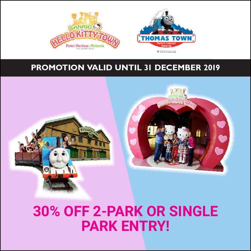 优惠活动:Hello Kitty Town & Thomas Town 入门票30% 折扣优惠