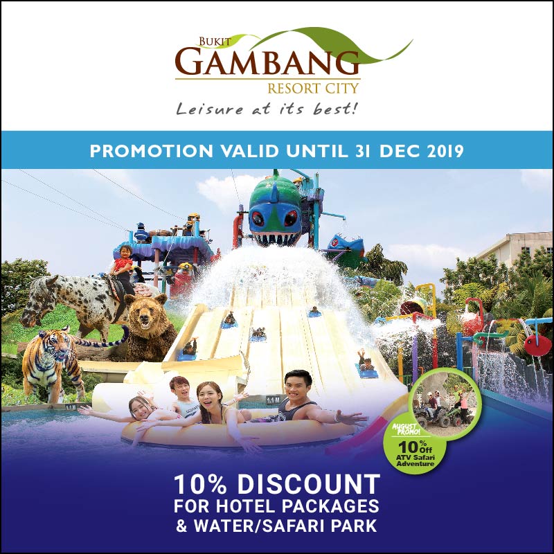 优惠活动:Bukit Gambang Resort City的酒店配套、Water Park 、Safari Park 和 ATV Safari Adventure 10%折扣