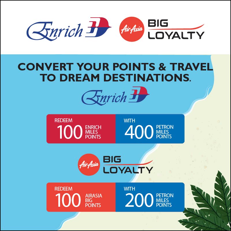 • 400 Petron Miles 分数可换取 100分 Enrich Miles Points