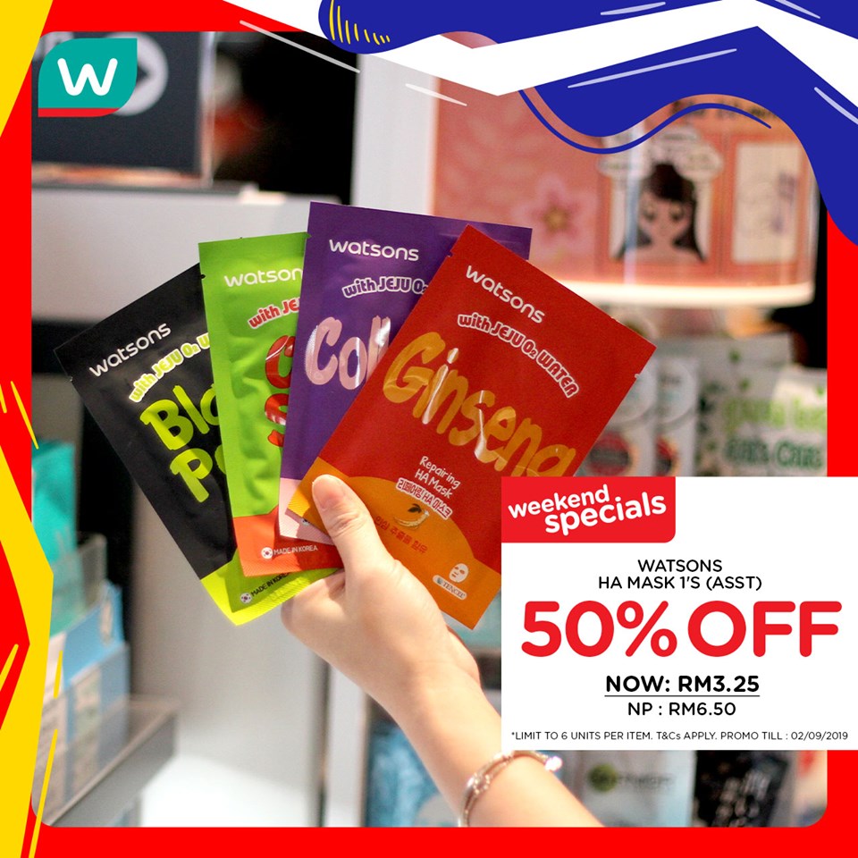如今全马Watson的商品包括面膜折扣高达50%~没错~每一片面膜半价而已!!!