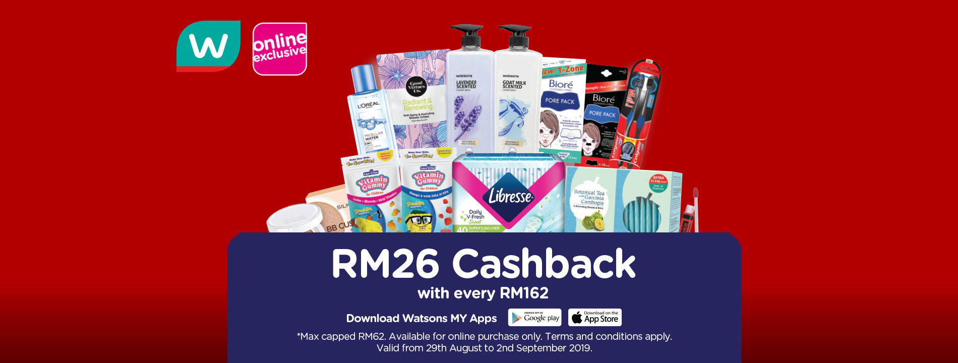 在这个周末如你在Watson官方网消费商品还可以享有现金回扣最高达RM62!没错!就是需要消费满RM162就可以享有RM62的cashback!又不用出么就可以买到优惠的商品!是不是一项好康是呢!