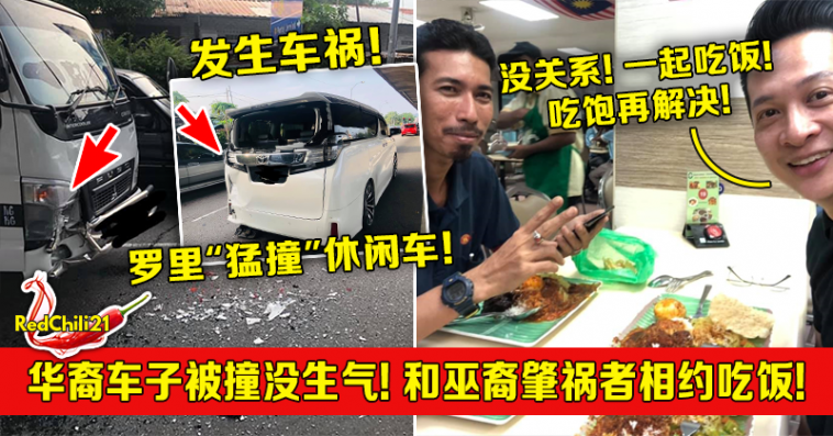 日前,一名大马华裔男子在面子书PO文,自己的车子被撞,对方是一名巫裔男子,两人车祸后不但没有吵架,还相约去吃饭!该帖文瞬间被网友们Like爆!