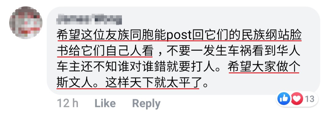 希望大马的各个种族都能这样互相帮助、相处越来越融洽,团结就是力量!