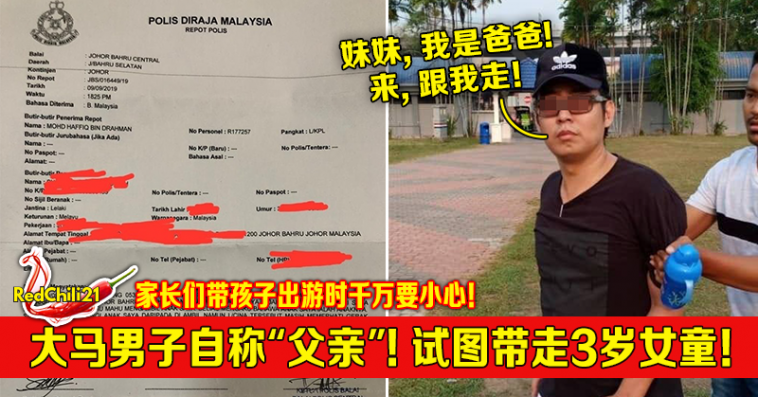 大马的爸爸妈妈们,近期若要带孩子出游,千万要小心了!前天(9月9日)新山发生一宗“抢小孩”事件!