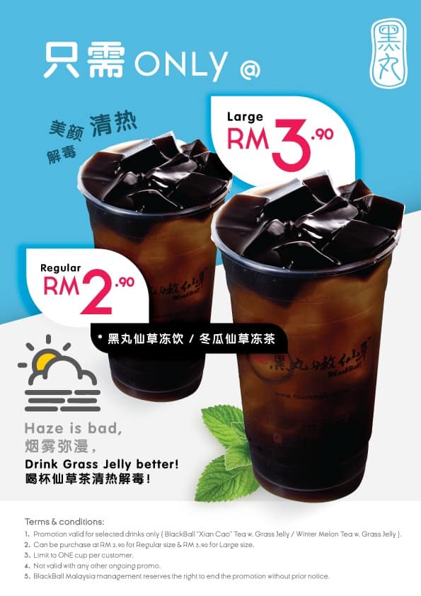 近日,大马黑丸在全马分行推出了特别优惠,黑丸仙草冻饮(Xian Cao” Tea ᵂⁱᵗʰ Grass Jelly)和冬瓜仙草茶(Winter Melon Tea ᵂⁱᵗʰ Grass Jelly)现在特价,一杯只需RM2.90,大杯的只需RM3.90!