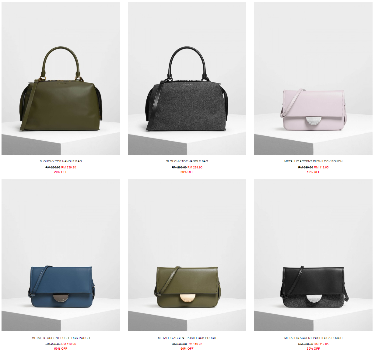 这次优惠是在Charles & Keith官方网站推出促销!从即日起举办清货大促销!折扣中包括鞋子、包包、钱包、配件等等!折扣最高为50%!