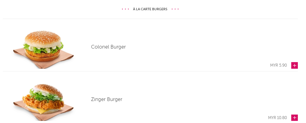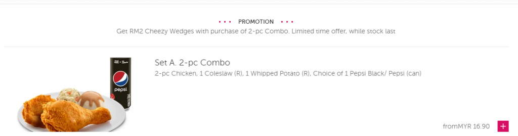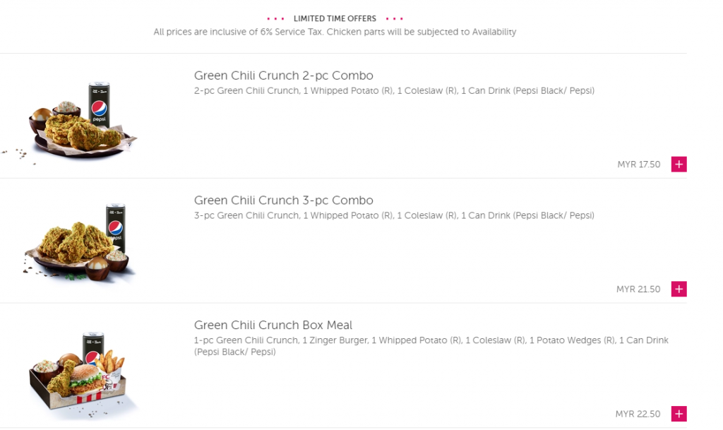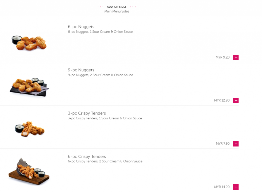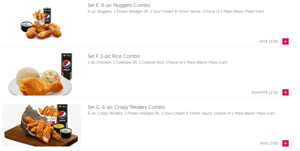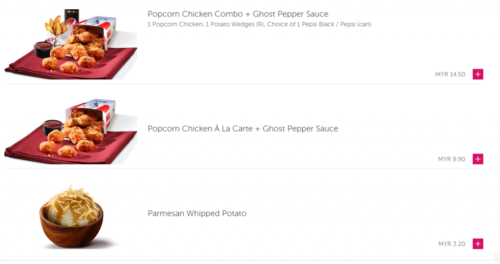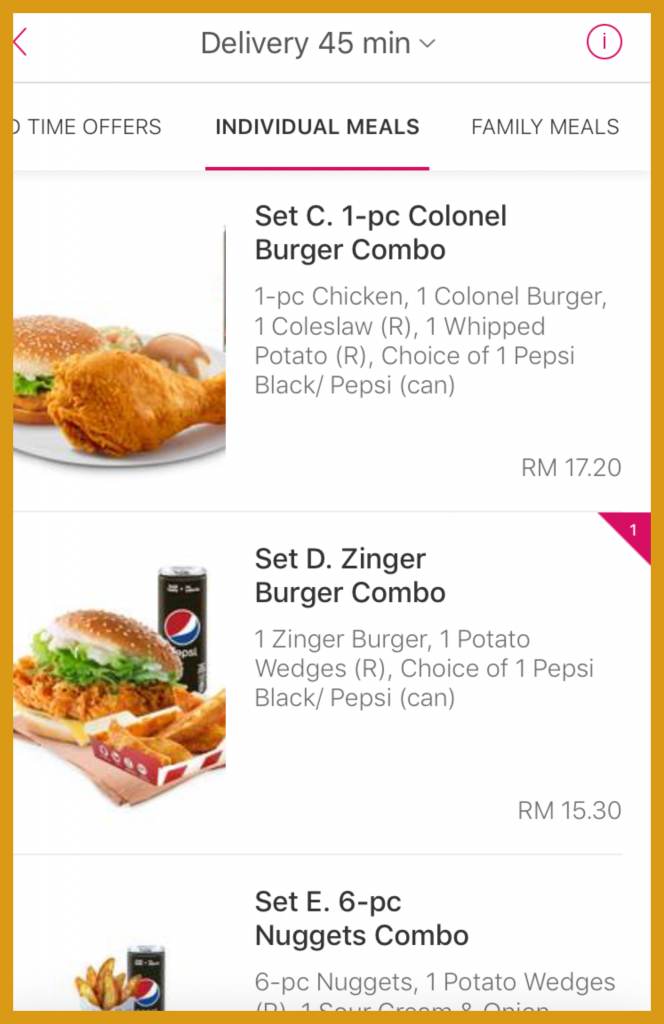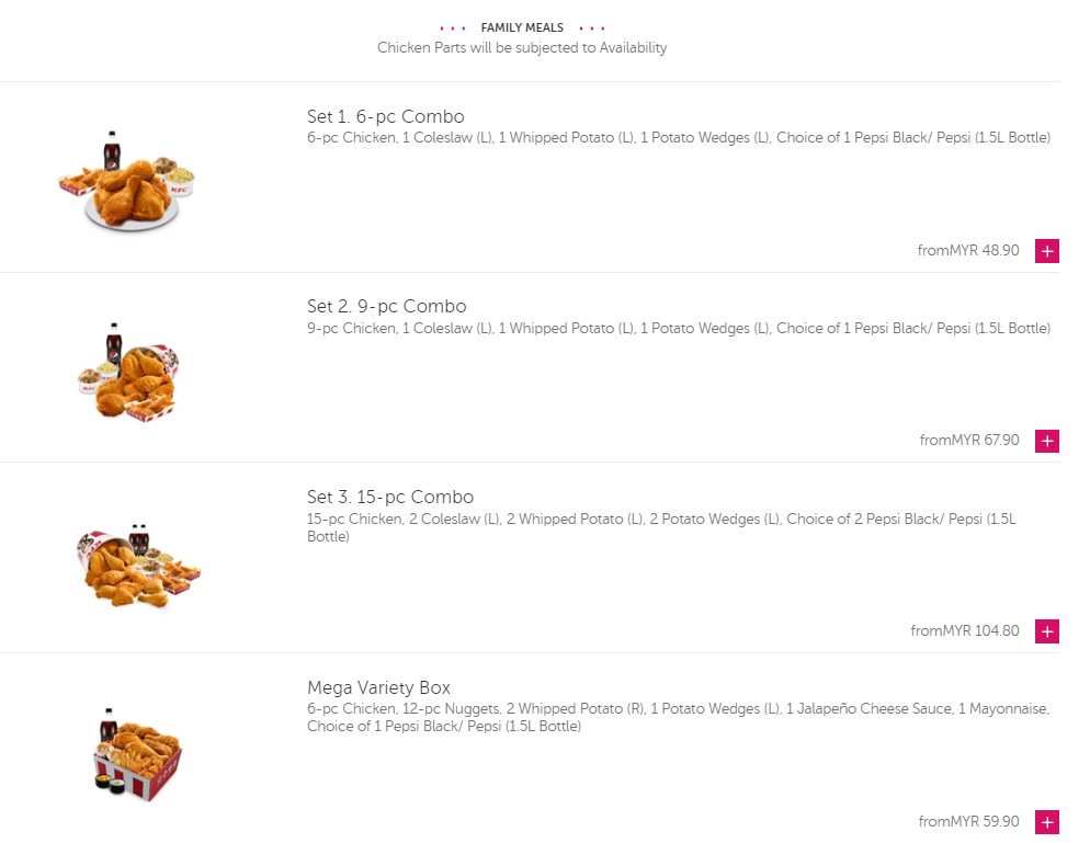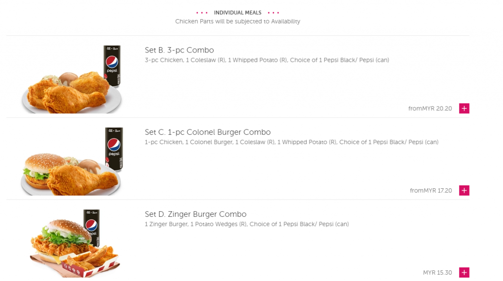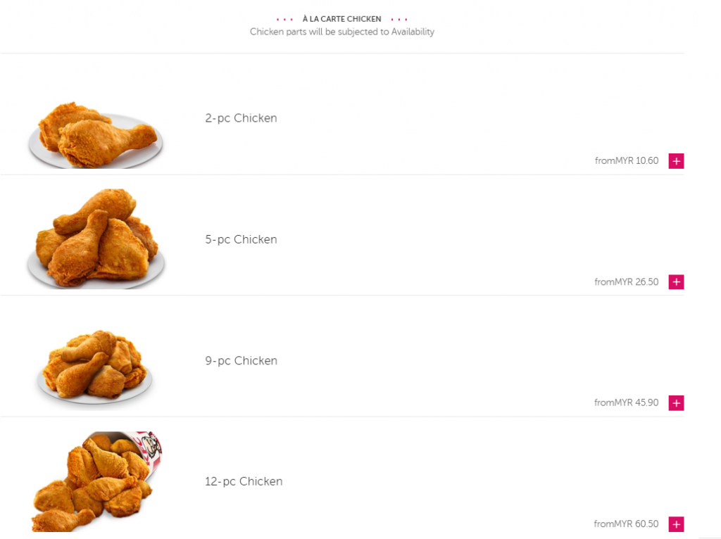 【KFC- Foodpanda的食物选项】