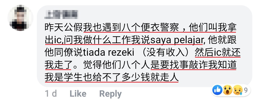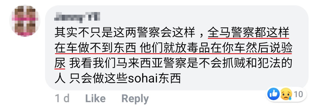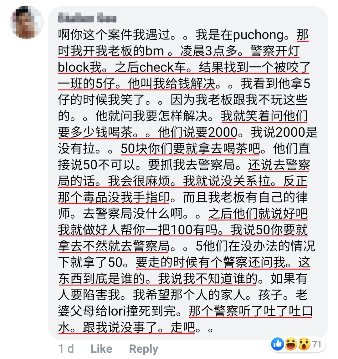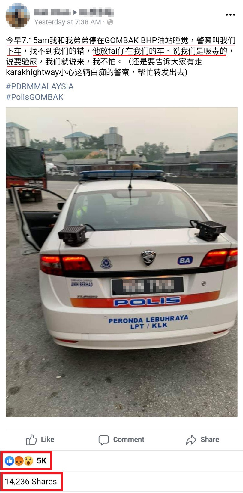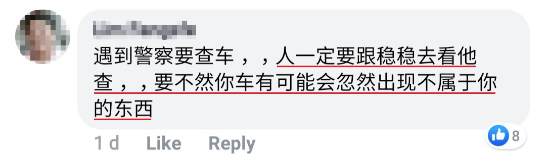 据《中国报》报道,事发当时,该名网友和弟弟在车内休息。突然一名交警走过来敲车窗,并命令他们立刻下车。交警开始对他们的轿车进行搜查,甚至命令他们把口袋里的东西都掏出来。