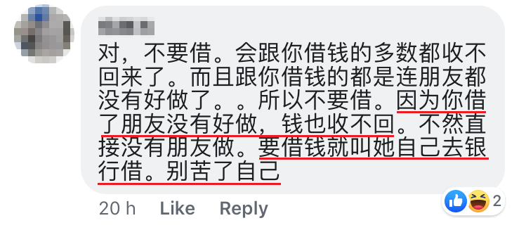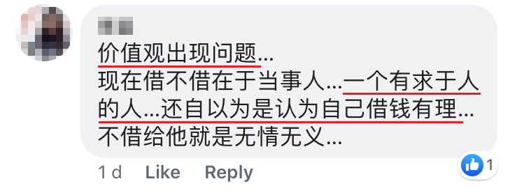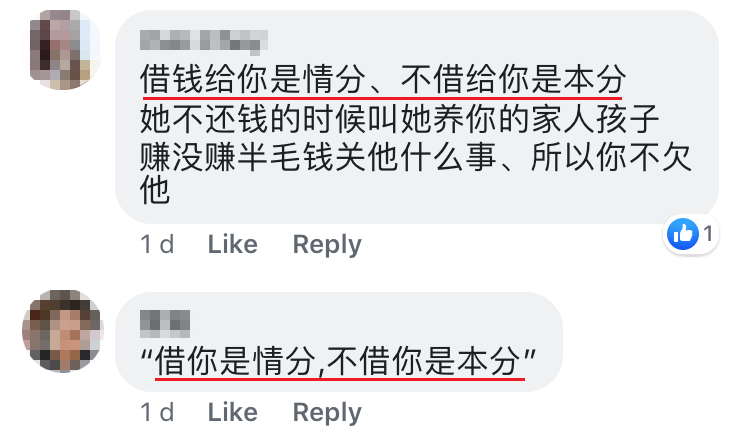 ▼网友们认为:“借钱给你是情分,不借给你是本分”。