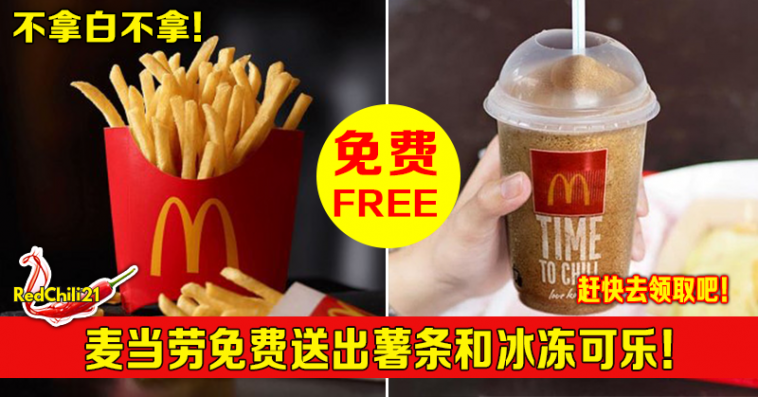喜爱吃Mcdonald‘s的薯条们,有好消息告诉你们!大马Mcdonald’s即日起免费送薯条或Coke McFreeze!