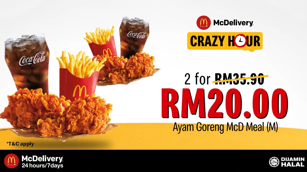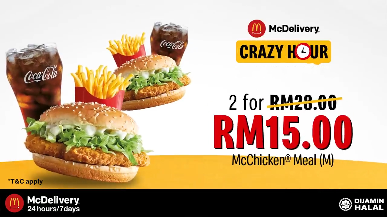 ▼  2x McChicken Crazy Hour Meal (M) 现在是 RM15.00(原价 RM 28.00)!