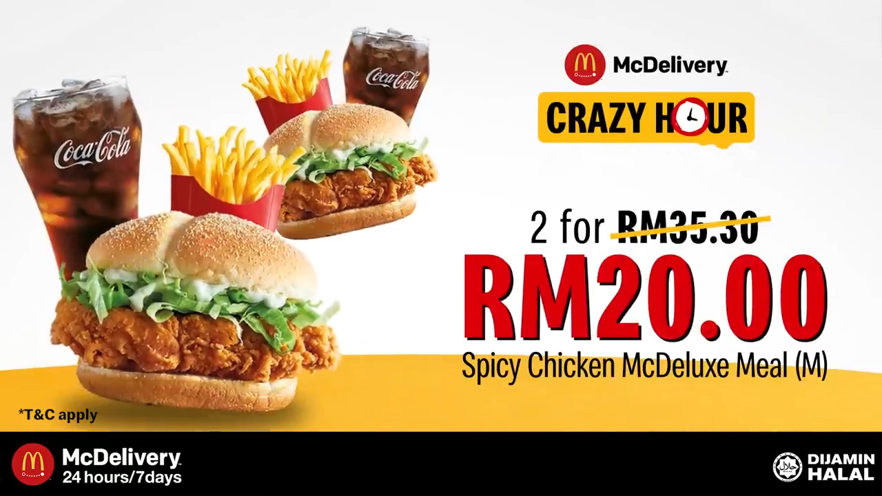 ▼  2x Spicy Chicken McDeluxe Crazy Hour Meal (M) 现在是 RM20.00(原价是 RM35.30)!