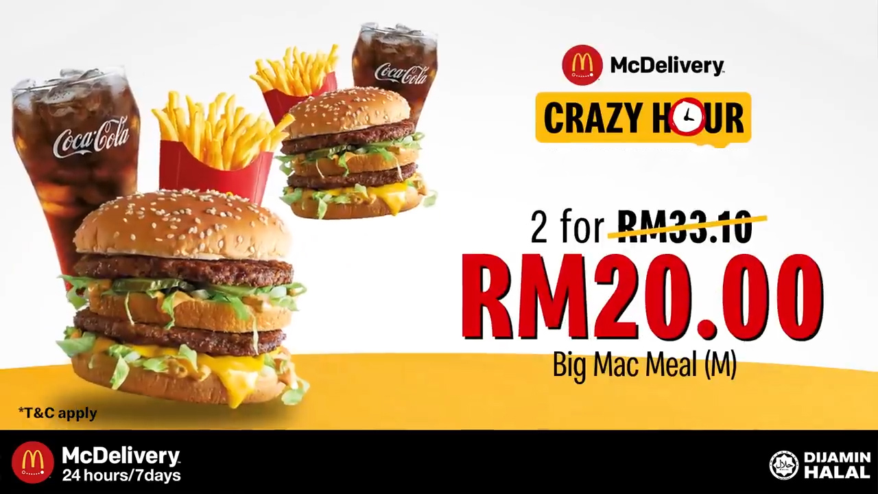 2x Big Mac Crazy Hour Meal (M) 现在是 RM20.00(原价 RM33.10)!