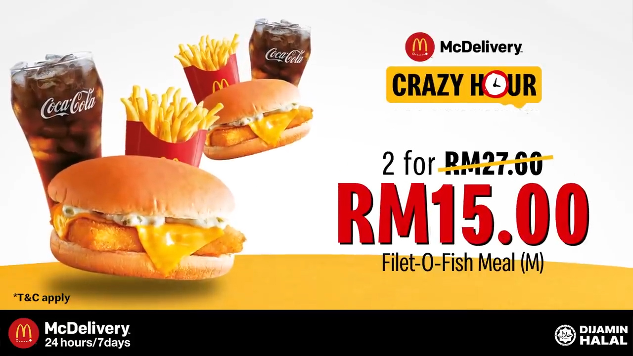 2x Filet-O-Fish Crazy Hour Meal (M) 现在是 RM15.00(原价 RM27.60)!