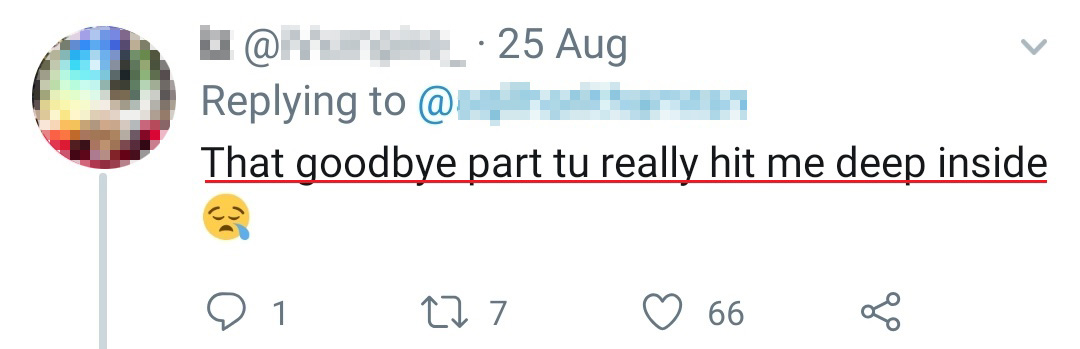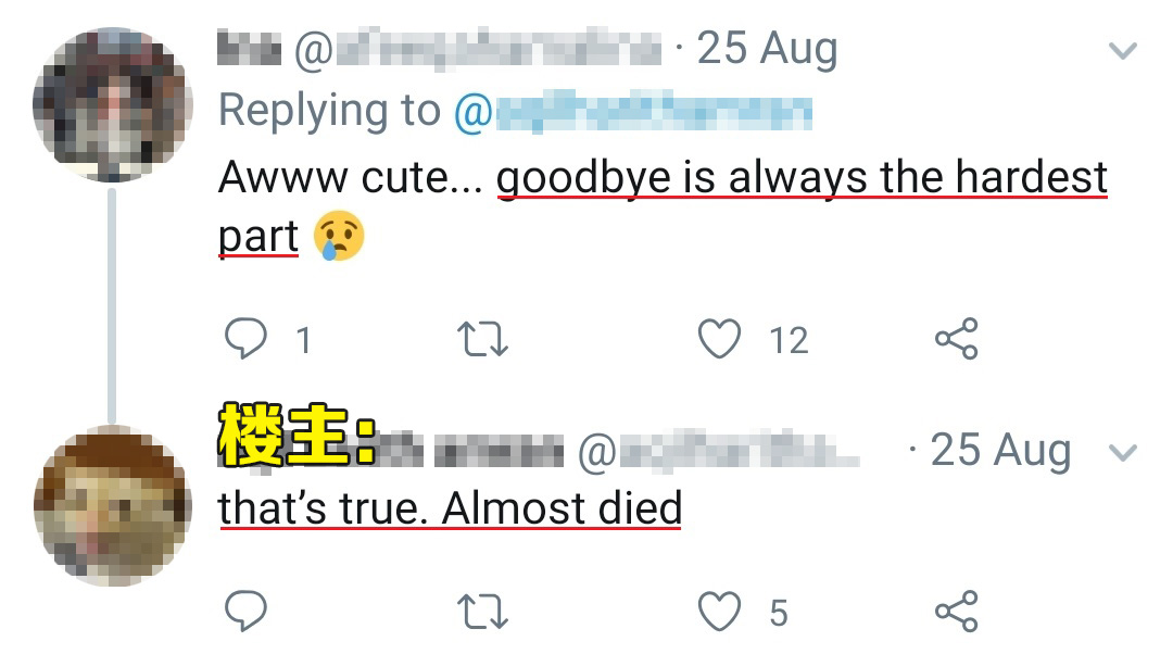 ▼ 最感动网友们的应该就是离别的那一Part了!楼主还说:「真的很痛苦!」