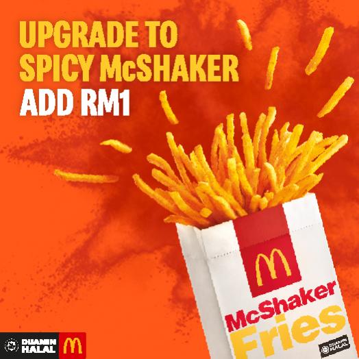 加入香料,摇一摇!只需RM1,就可将超值炸薯条升级到全新的 Spicy McShaker Fries !
