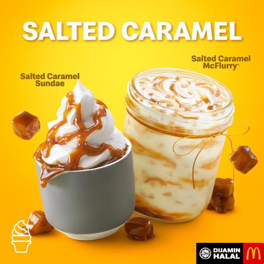 你最喜欢的香草冰淇淋配上咸焦糖漩涡,完美组合来啦~ 你会发觉 Salted Caramel Sundae 和 Salted Caramel McFlurry 的味道有多棒!