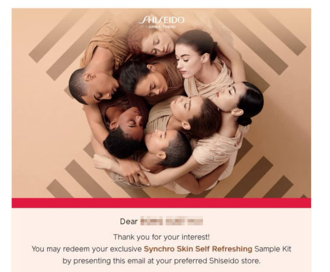 步骤2:填写成功后,优惠卷将会收到电子邮件后可到你指定的Shiseido柜台地方,出示优惠卷就以领取你的sample!很简单对不对!存货送完为止!