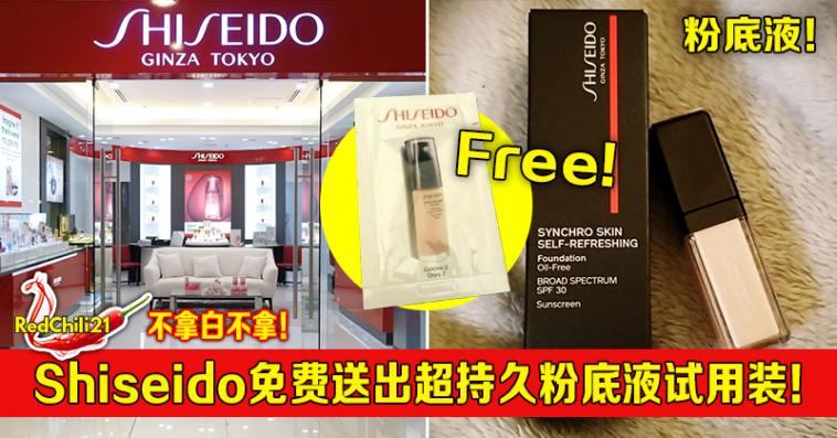 这次Shiseido将免费送出 Synchro Skin Self Refreshing粉底液试用装!