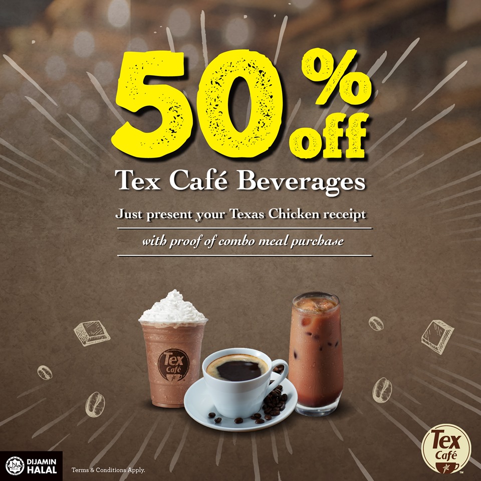 ▼ ⑤ 只要出示购买 Texas Chicken 套餐的收据,就可享有饮料50%折扣优惠!