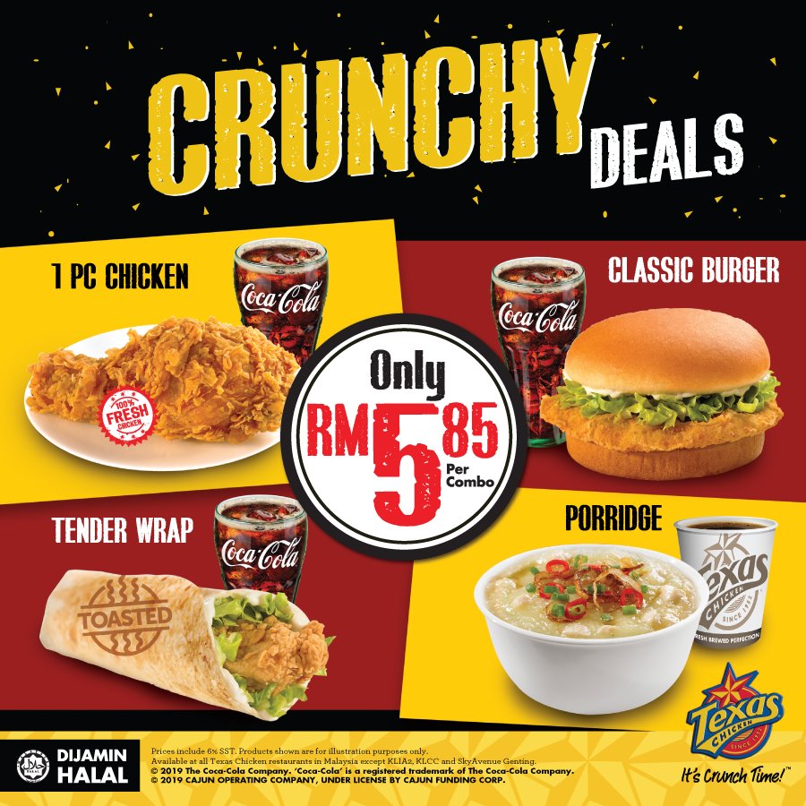 只要在9月16日当天,到 Texas Chicken 分行就可享有此优惠啦!原价RM14.90的套餐,当天就只需RM6.90哦!