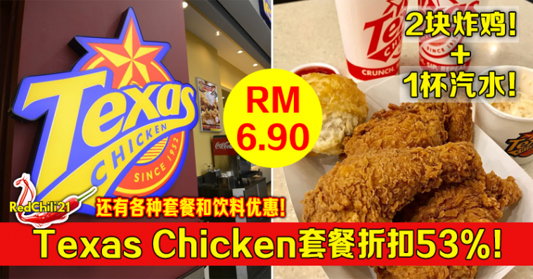 吃货们,注意咯!大马 Texas Chicken 将在来临的马来西亚日(Malaysia Day),推出超便宜优惠!2块炸鸡+1杯汽水只需RM6.90!