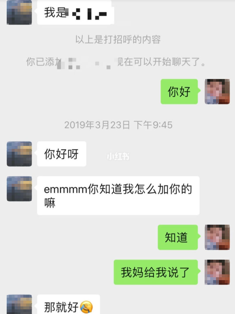 和男朋友是爸妈介绍认识的hhh,算是相亲吧!偶麻麻和他爸爸是初中同学,然后同学聚会的时候聊到说两个孩子都还没对象,加个v相互了解一下。然后就有了下面对话。