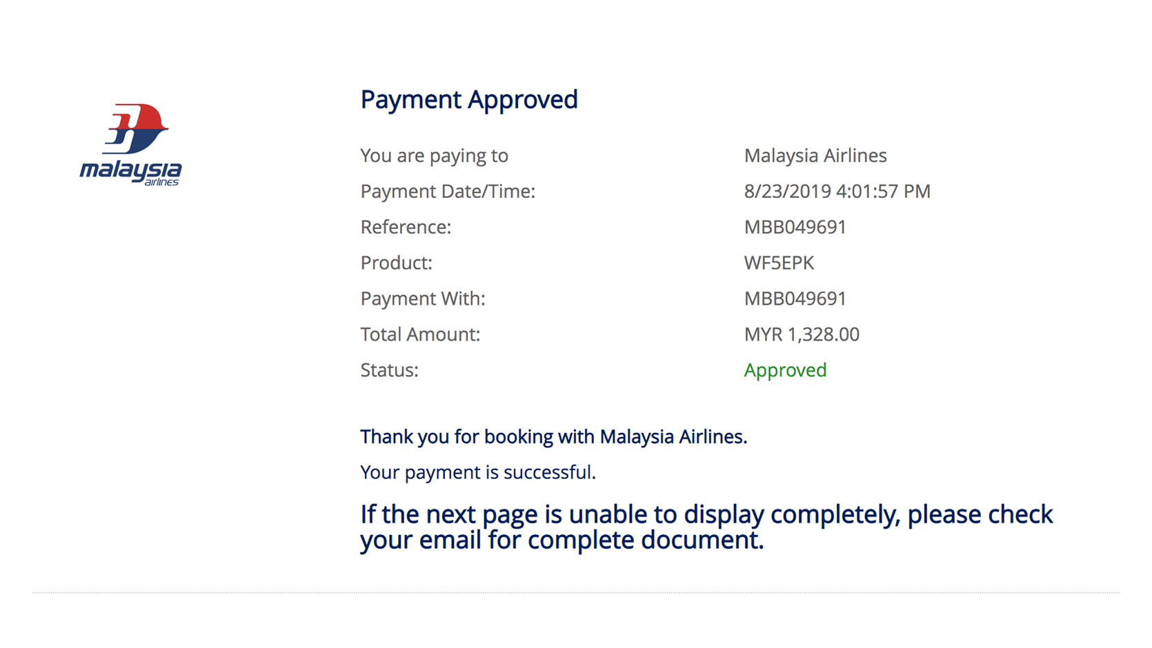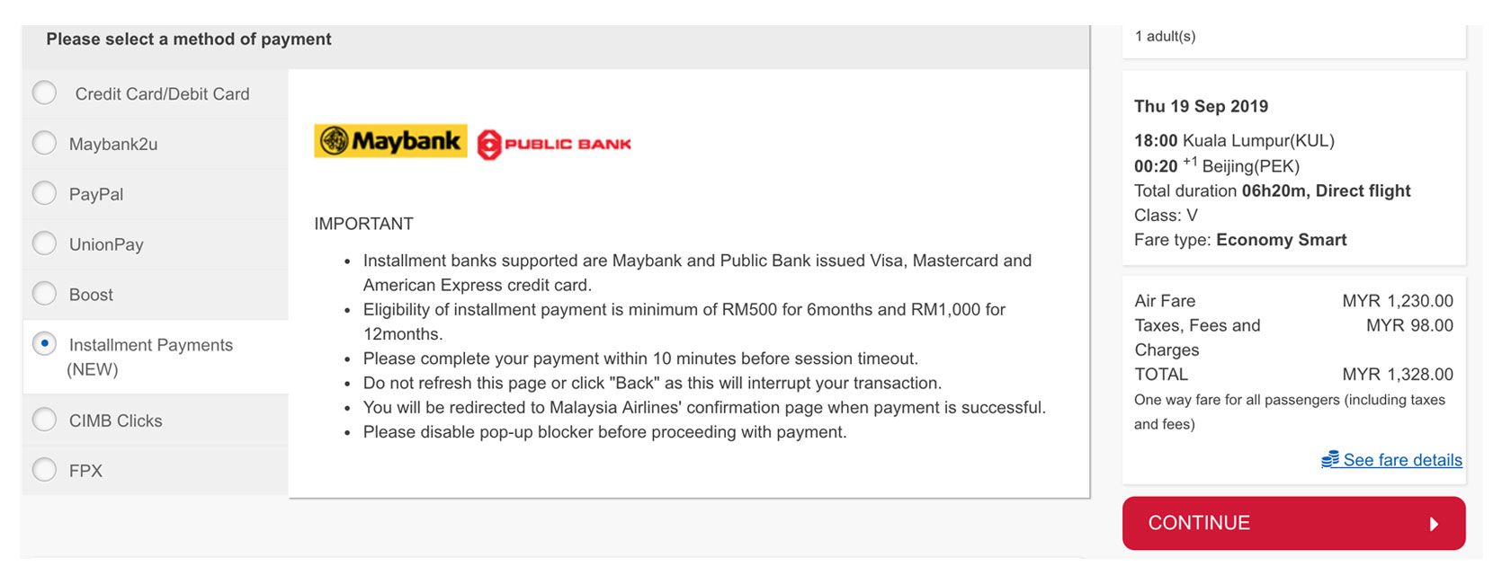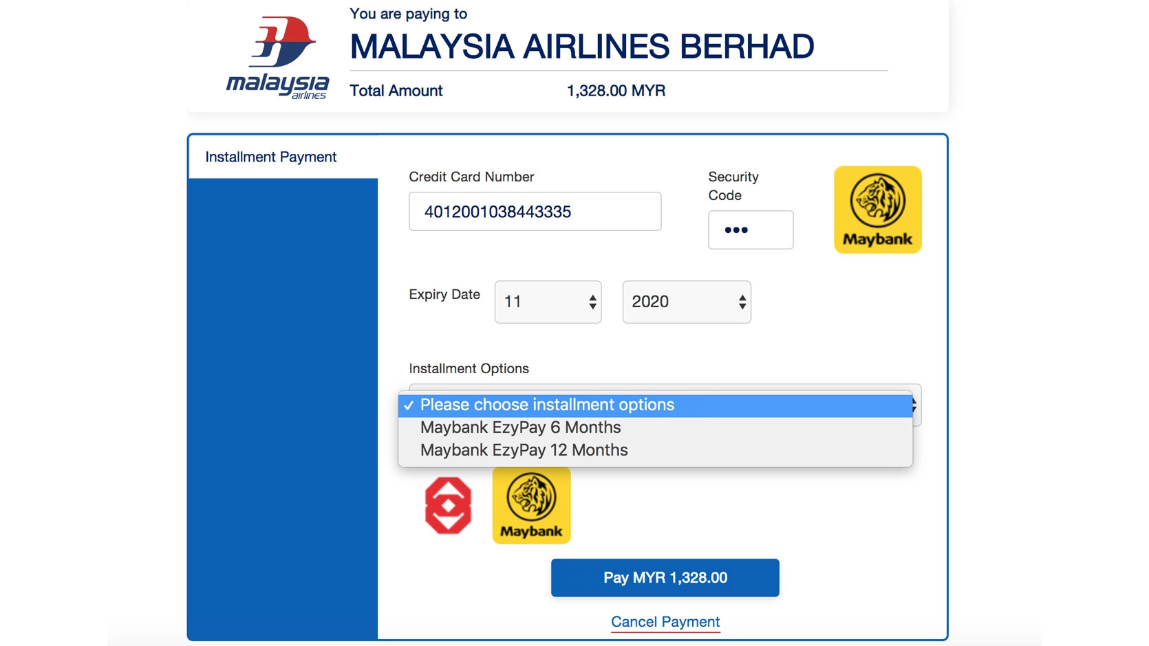 注意:目前马航只接受 Maybank 和 Public Bank 的信用卡。