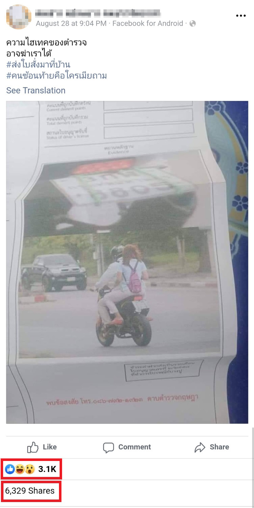 近日泰国有一位妻子在家里待着时,突然收到一张交通罚单。