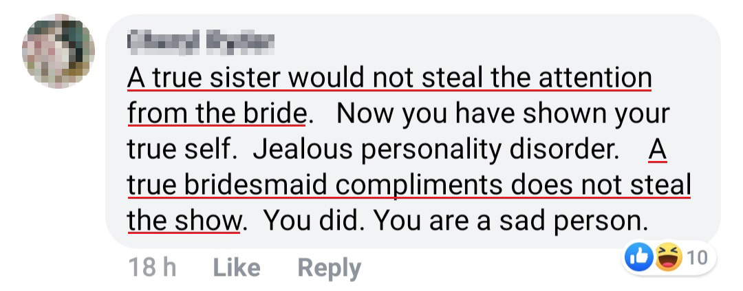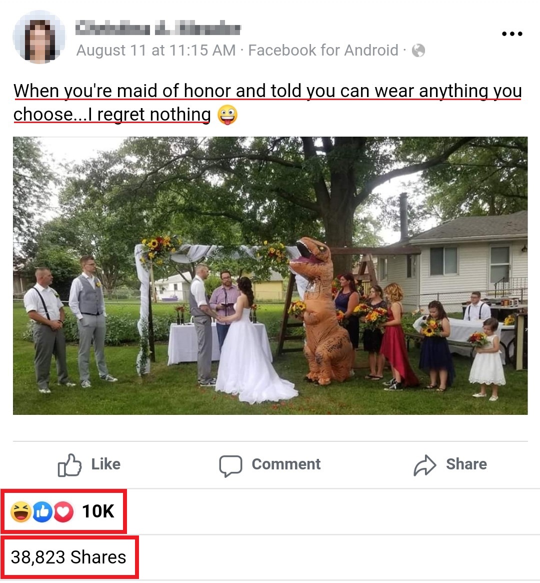 这场婚礼的新娘在面子书PO文写道:「如果你是伴娘,然后告诉你可以穿任何你选择的服装……我完全不后悔!」
