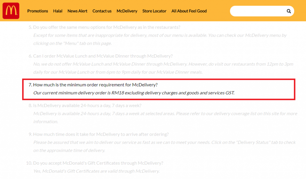 如果无法达到RM18的最低消费限制就不能叫麦当劳来吃啦!这问题真的是懊恼,叫多了又吃不完!
