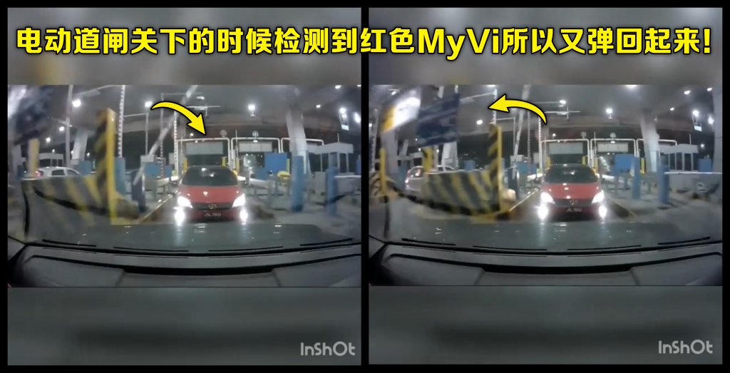 ▼Toll的电动道闸要关下的时候检测到红色MyVi所以又弹回了起来!