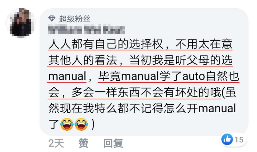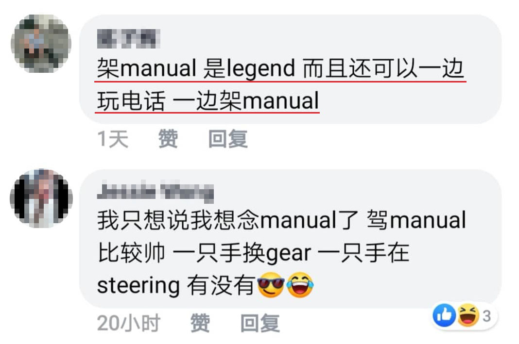 这篇文章也引起不少网友前来发表意见及分享人生中驾驶“Manual”车的经验!
