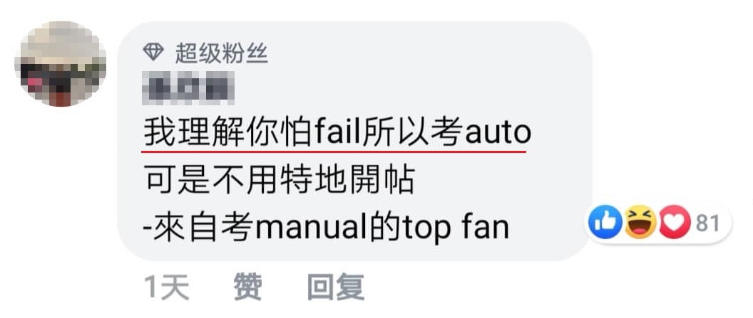 ▼ 最后,有位神网友猜测会不会这篇原文的主人是害怕考Fail所以才选择Auto的!