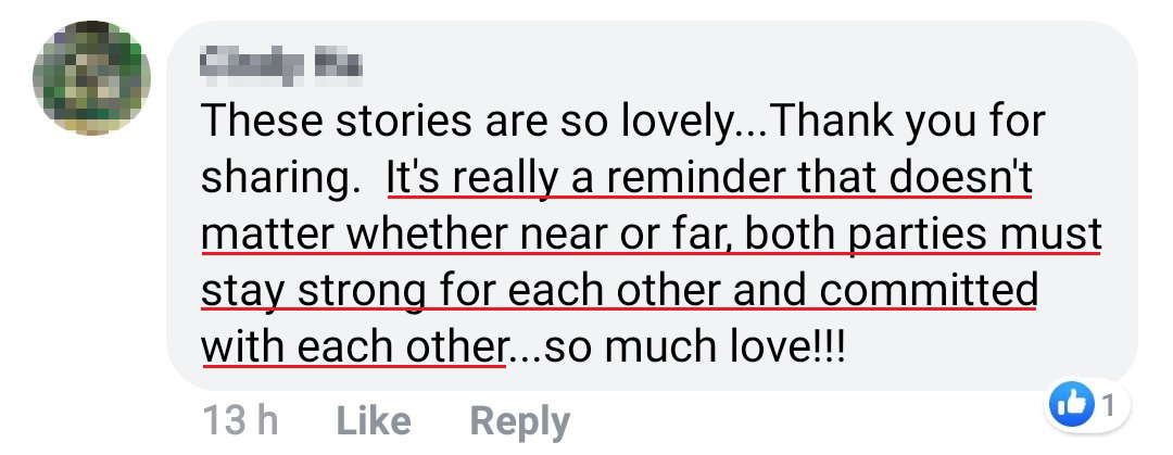 远距离恋爱并不容易,但我们为了彼此都尽了一切的努力:互相信任、从不说谎、从不隐瞒,并寻找各种方式来表达对彼此的爱。我们克服了这一切的障碍,只希望我们能在不久的将来,一起在同一个城市里。