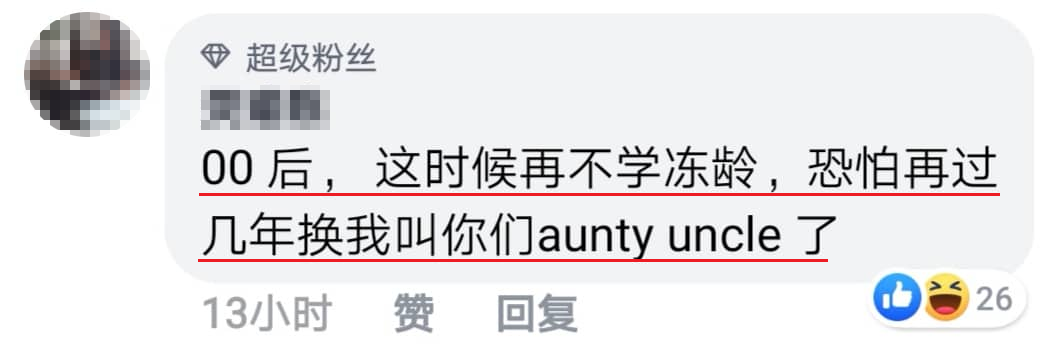▼ 这时也有网友奉劝00后该学冻龄不然很快也会被人叫称Aunty Uncle了!