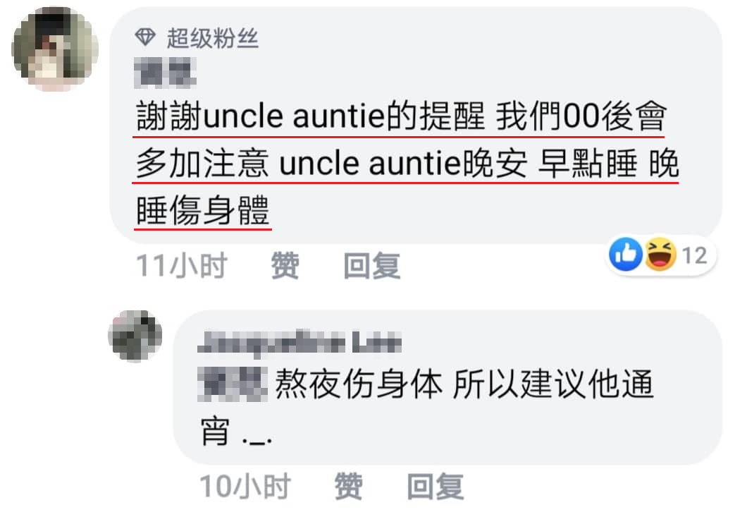 ▼ 00后感谢Uncle和Auntie的建议!同时也提醒“Uncle Auntie”早点睡以免伤身体!