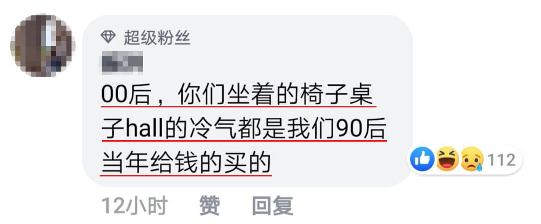 ▼所以90后的网友也乘机大反击了!“你们00后所坐的桌椅及hall的冷气都是90后出钱买的”!