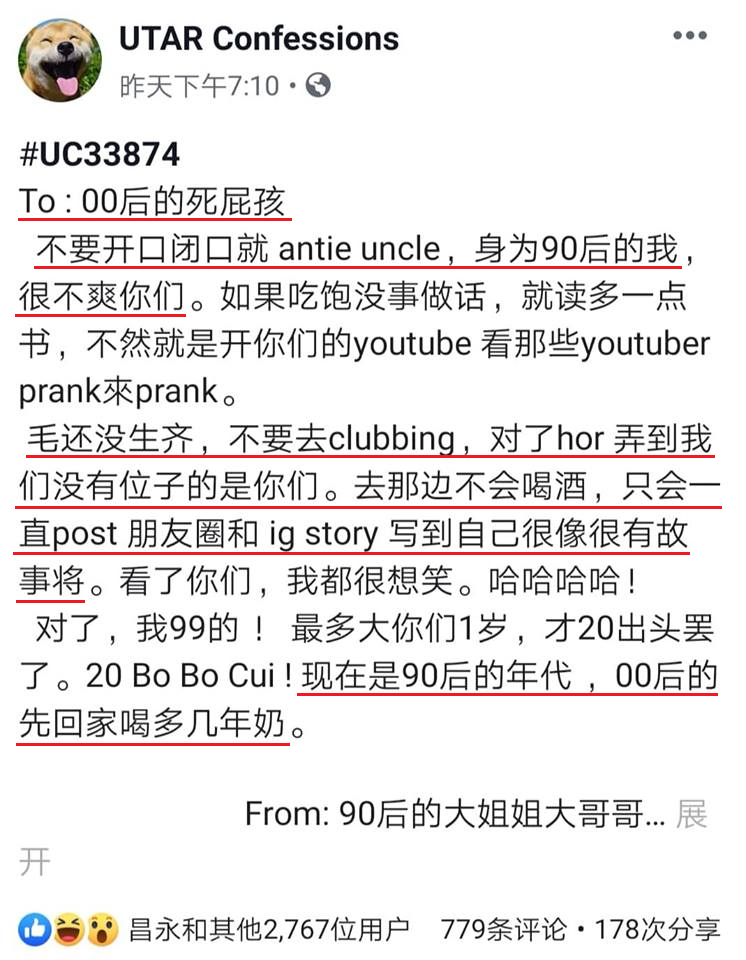 最近来自Utar Confessions面子书发出了一则致「80后90后的Uncle Auntie」的帖文!