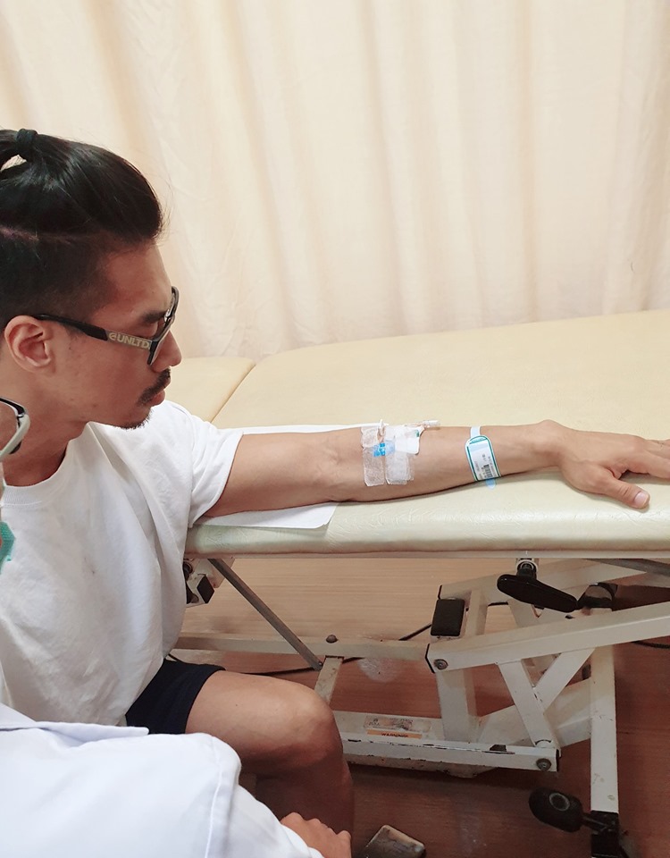 到了医院以后,医师检测筋肉爸是脑部栓塞的中风,因为简讯判读他中风还不到三小时,于是评估后打了栓塞溶解剂。