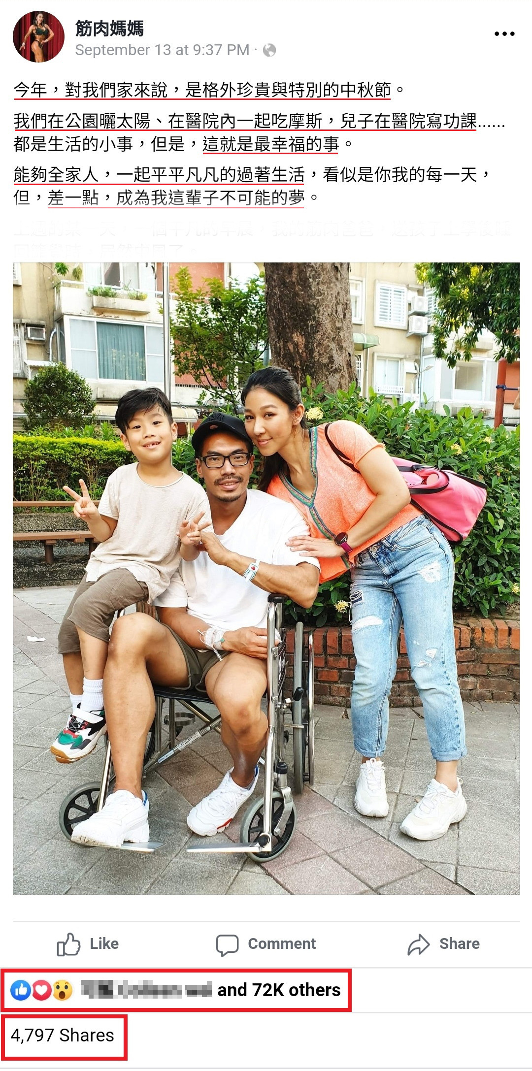 “筋肉妈妈”的以上帖文被广大网民们 Like 爆,按赞人数多达72,000人!