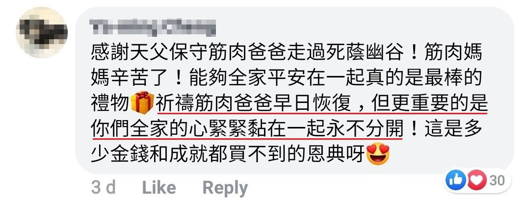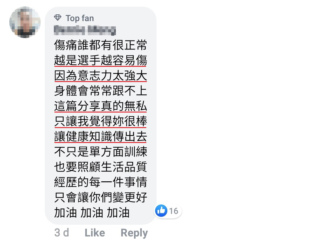 许多朋友,告诉我不要发这个讯息。原因不外乎,筋肉爸爸曾经是顶尖的运动选手、好评讲师;现在受伤了需要长时间复健,自然会吸引许多坏嘴酸民想要落井下石,进而影响我们的生活。