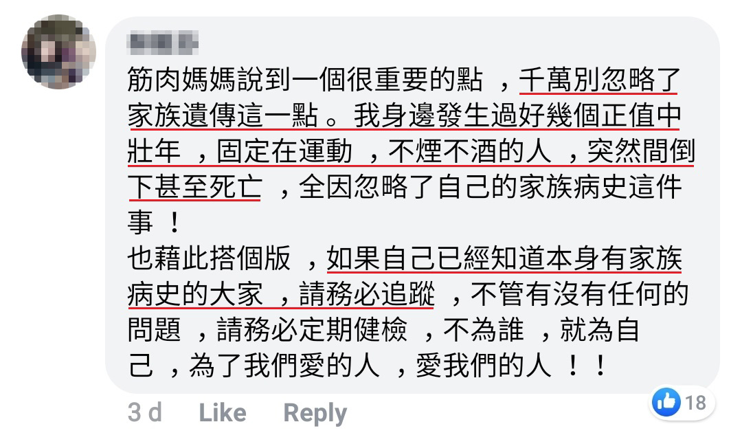许多人都以为:只要有健身,身体就一定健康,往往却忽略了「家族的基因遗传」!