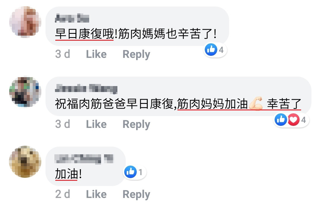 ▼ 网友们为“筋肉爸爸”和“筋肉妈妈”加油打气!