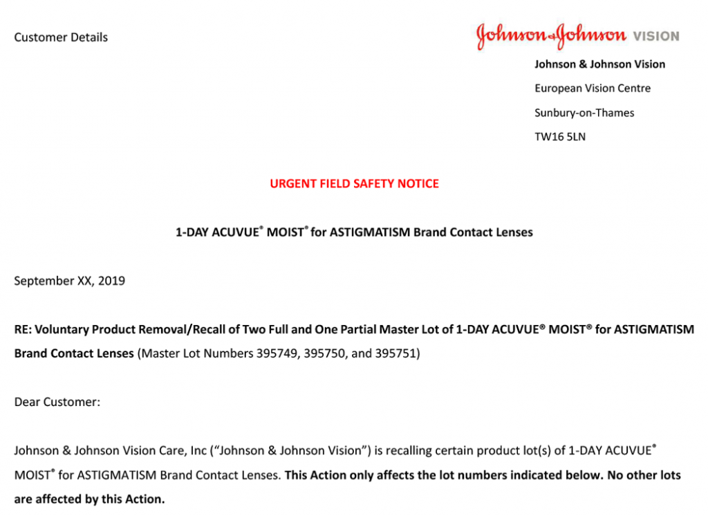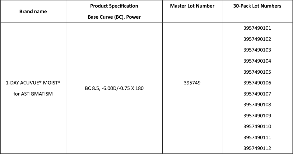据英国药品和保健产品监管署 MHRA(Medicines and Healthcare products Regulatory Agency发布的消息,MHRA敦促用户查看自己使用的强生公司安视优日抛隐形眼镜(Acuvue 1-day)型号,因为强生公司近期主动召回了特定批次的安视优日抛隐形眼镜。