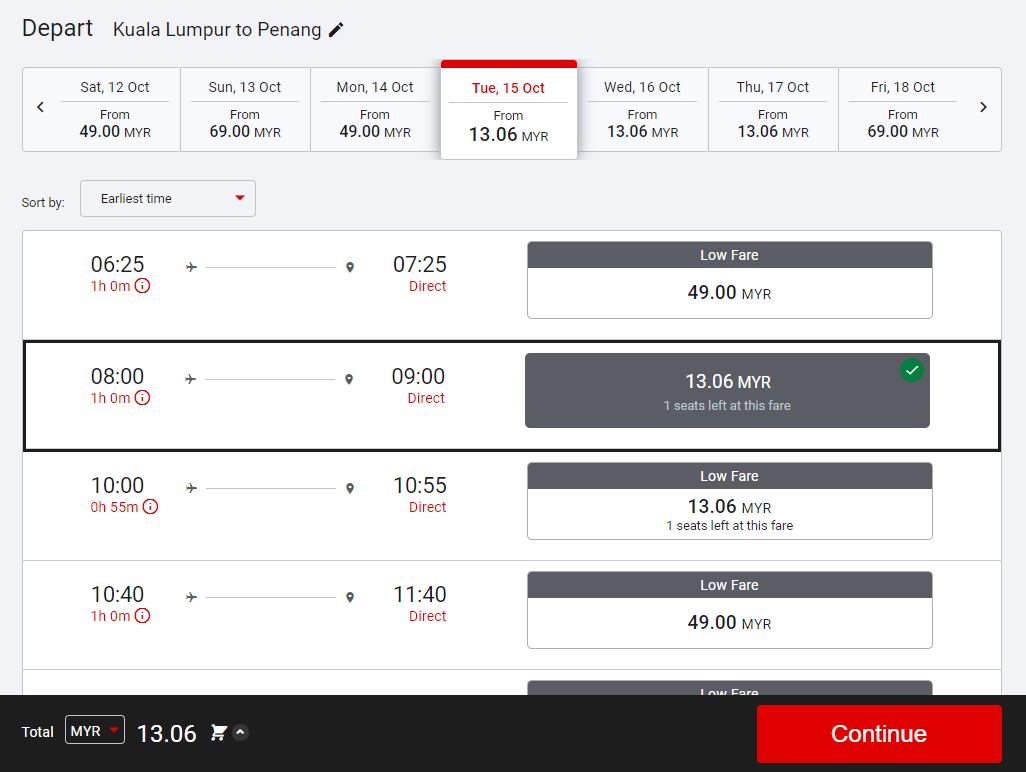 无论从吉隆坡或新山起飞,飞往槟城都同样只需 RM13.06 !