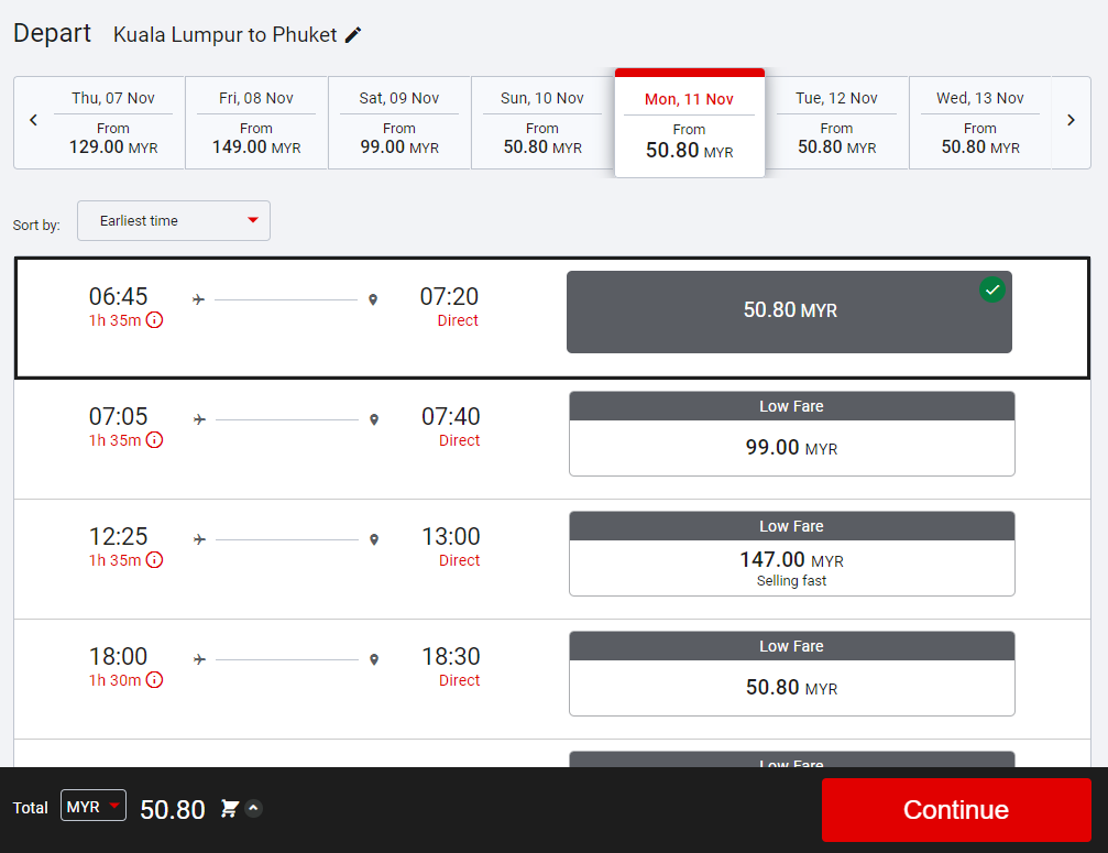 ▼ ④ Kuala Lumpur – Phuket:从 RM50.80 起(单程)